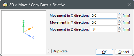 The preview illustrates the orientation of the axes or the direction of the length and angle values. For angle values, please use the "right hand rule": Point the thumb of your right hand's fist into the positive axis' direction, and your fingers will point into the positive rotation direction.