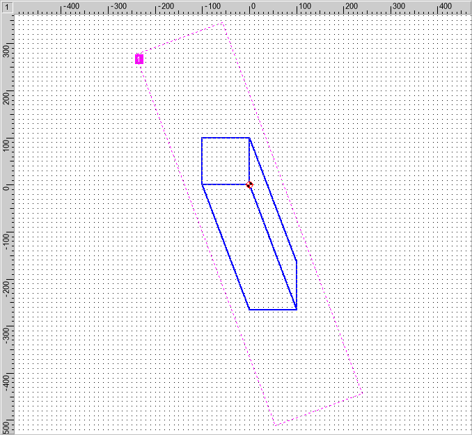 This is the right side of the cube. One of the horizontal sides has already been drawn. Draw another square using Draw > Polygon > Parallelogram, placing the first two points on the previously-drawn vertical line and dragging the square's outline right by 100 mm (10 grid points) (Figure 5).